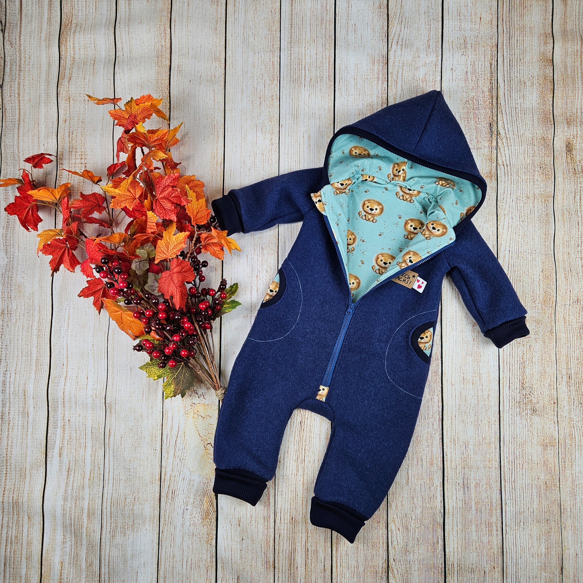 Jeder Overall wird nach Bestelleingang individuell für dich gefertigt – wähle einfach deinen Lieblingswalk, das passende Wollbündchen, deinen Wunschfutterstoff und ein passendes Label oder Applikation.