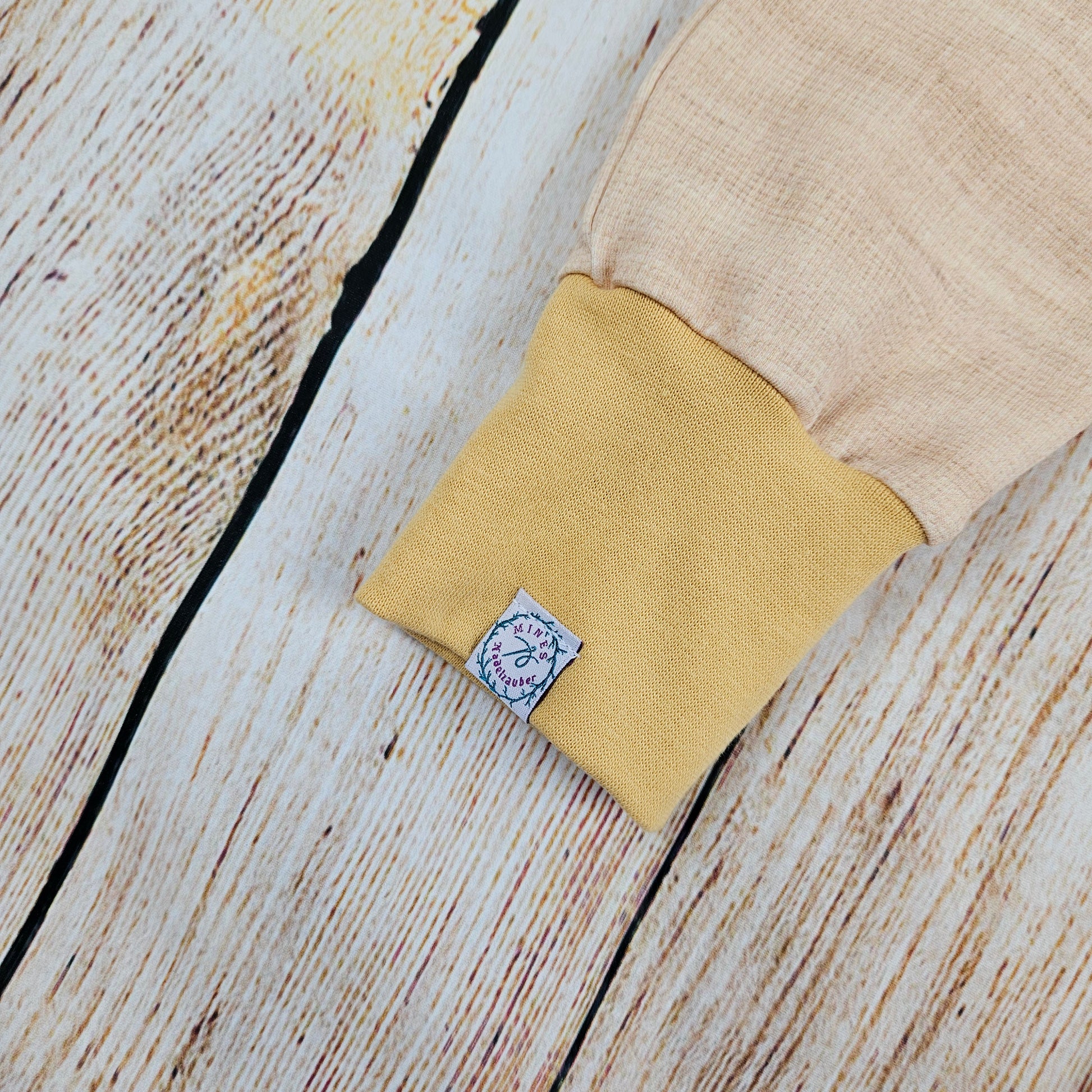 Für diesen Strampler verwende ich weichen French Terry, der zu 95% aus Baumwolle und 5% aus Elasthan besteht. Das Material ist sanft zur Haut und gleichzeitig atmungsaktiv, sodass dein Kind sich den ganzen Tag wohlfühlt.