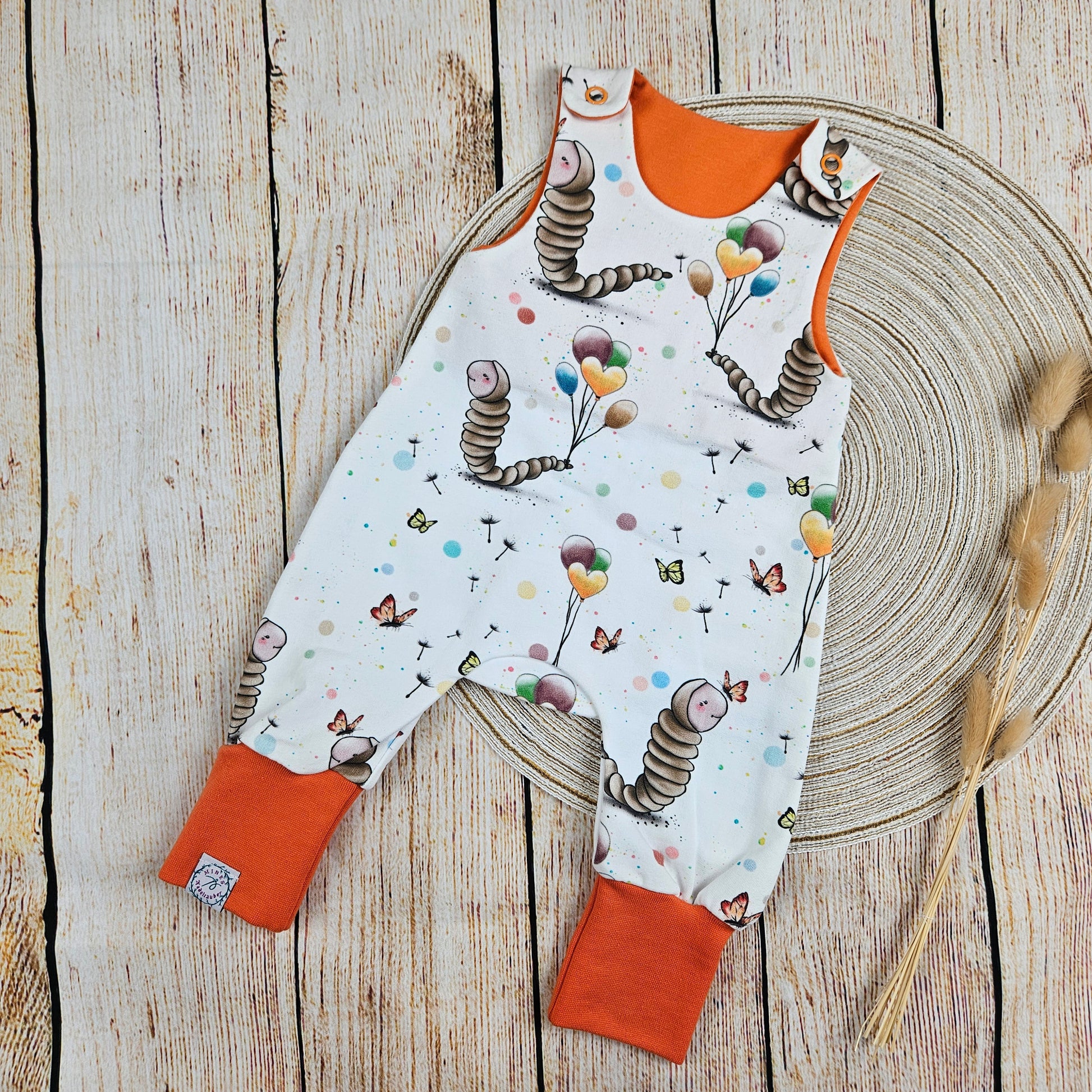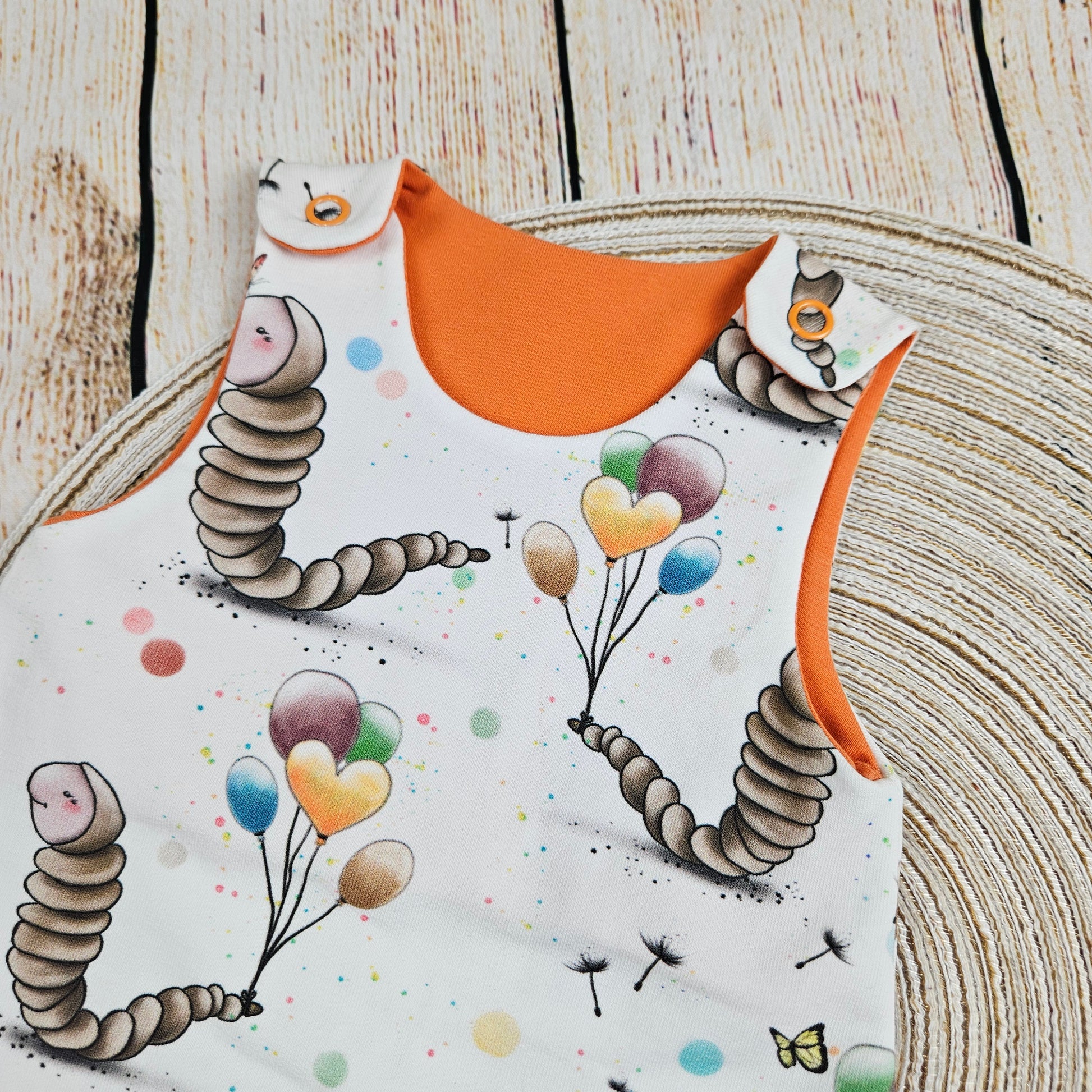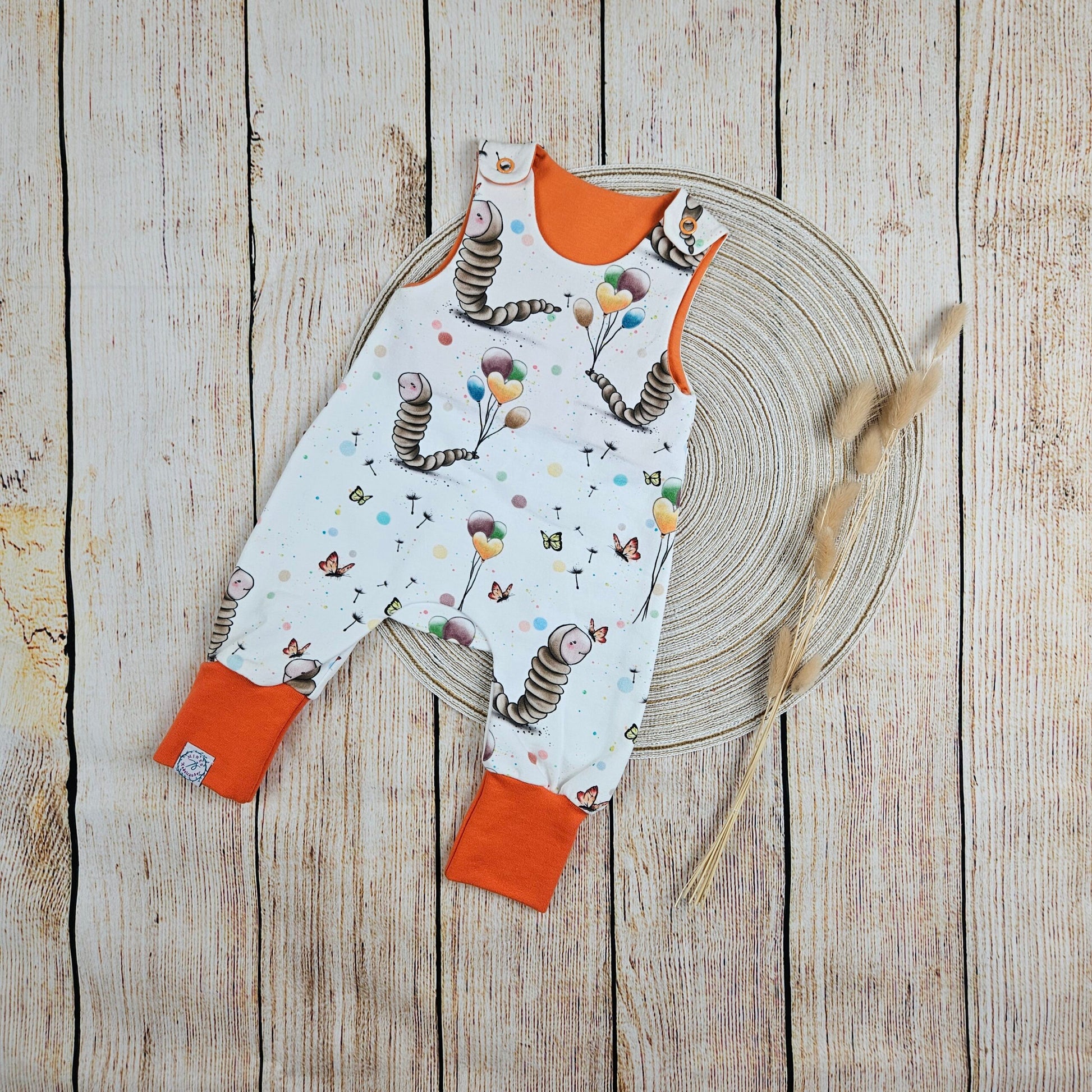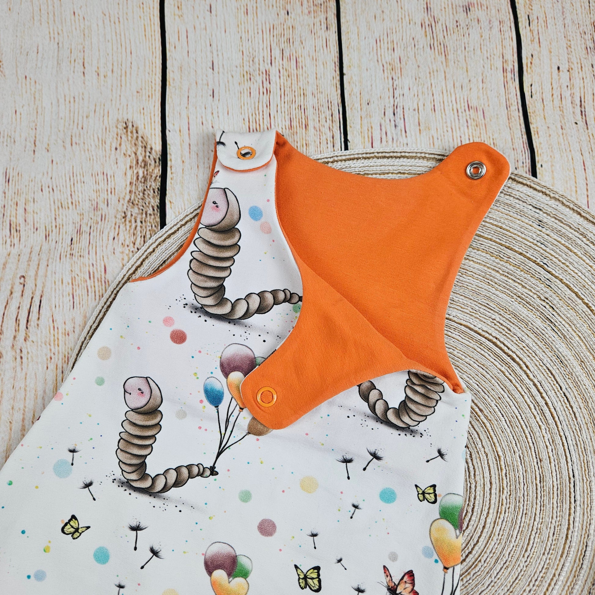 Strampler mit süßen Schmetterlingsraupen und Luftballons