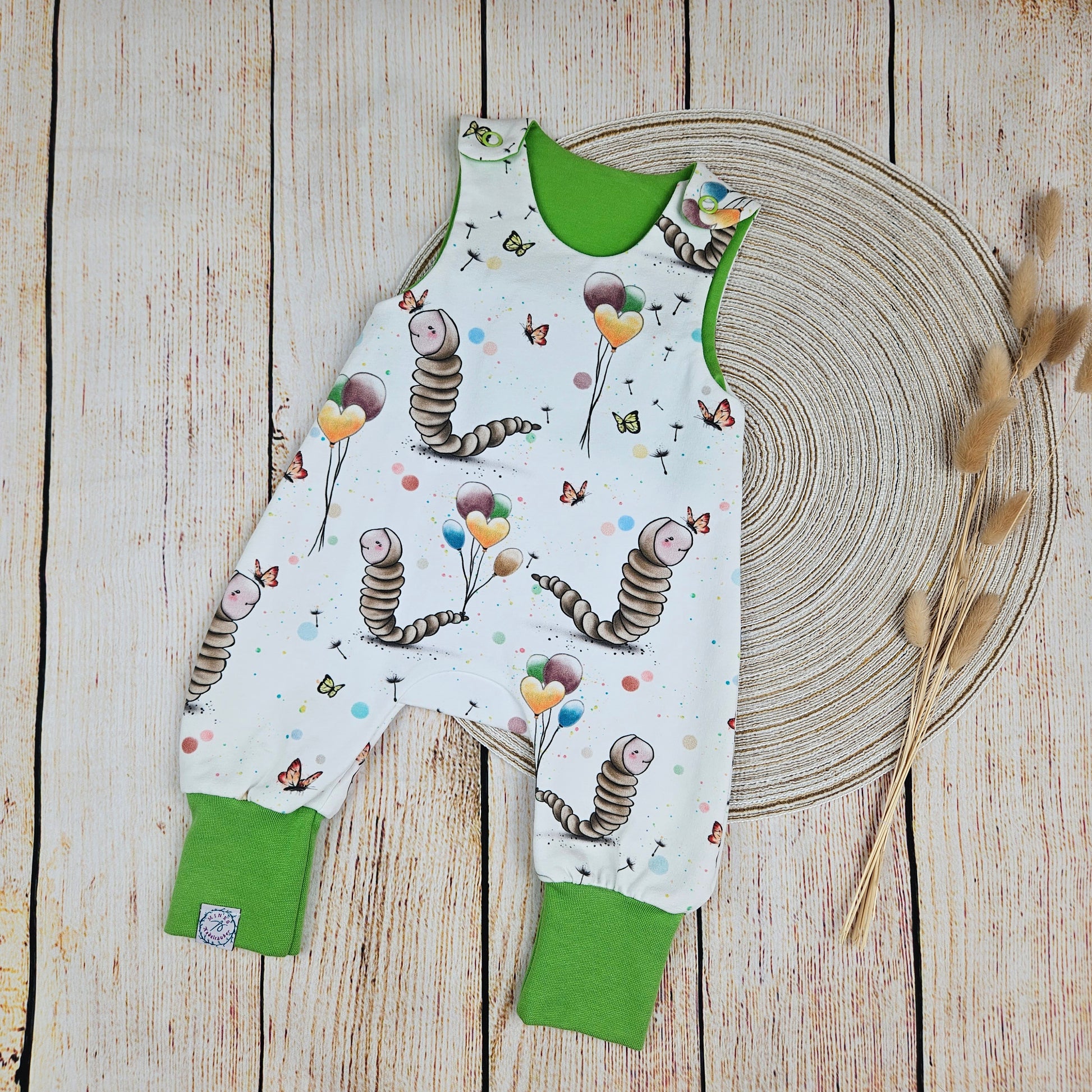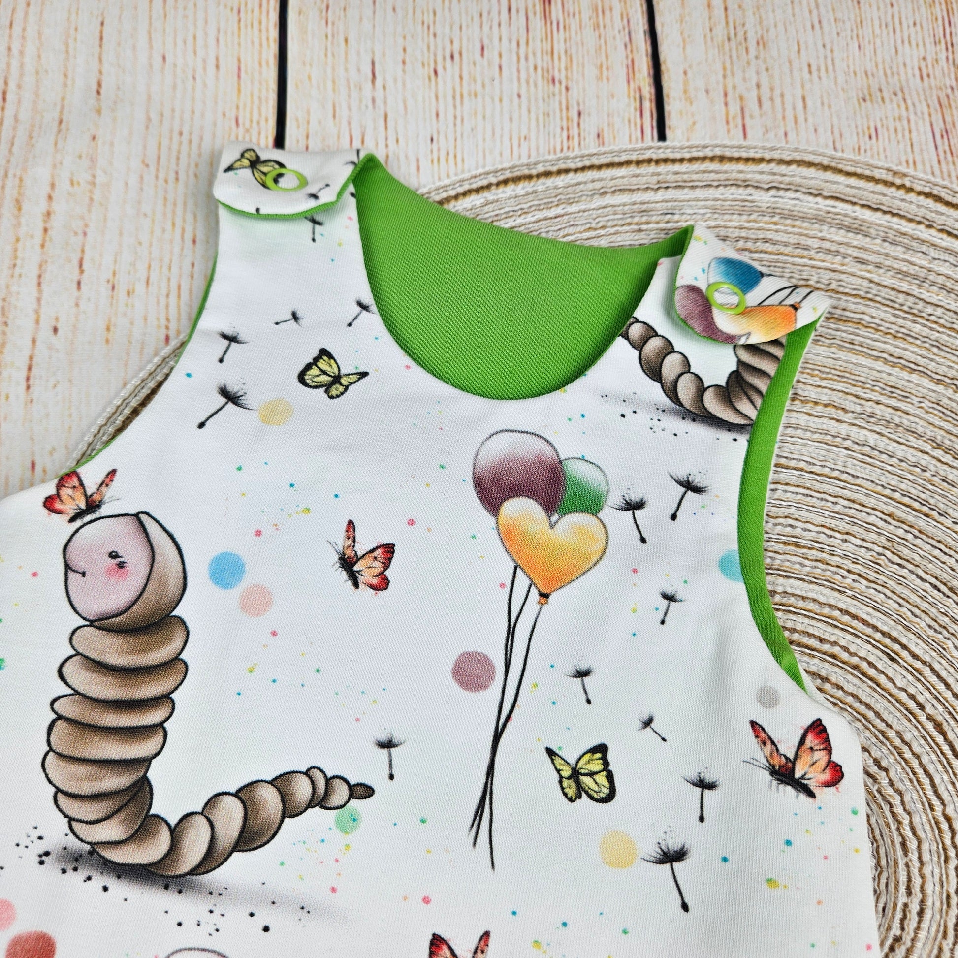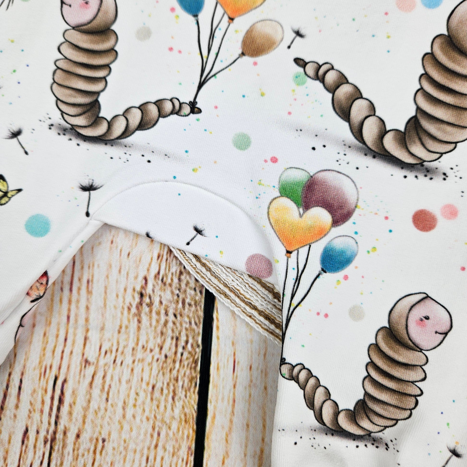 Strampler mit süßen Schmetterlingsraupen und Luftballons
